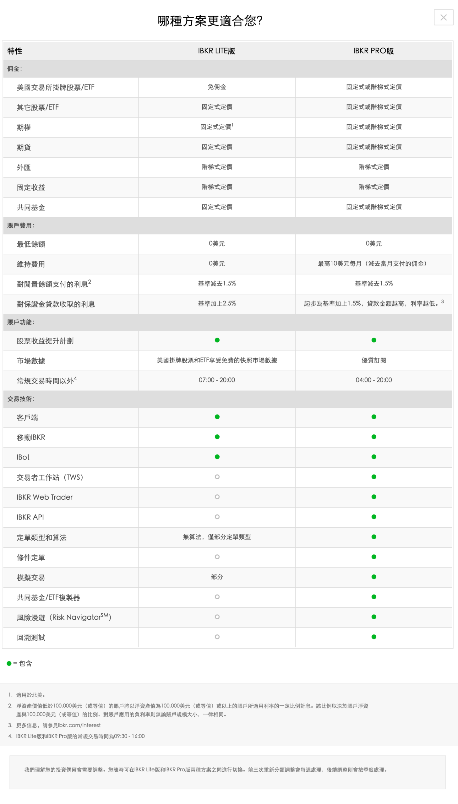 - Lite 目前只開放予美國公民,香港用戶目前只能使用IBKR Pro
